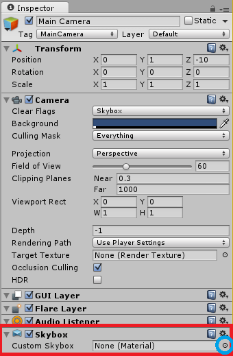 追加された[Skybox]の右側にある青枠で囲んだ丸井のをクリックしてください。
